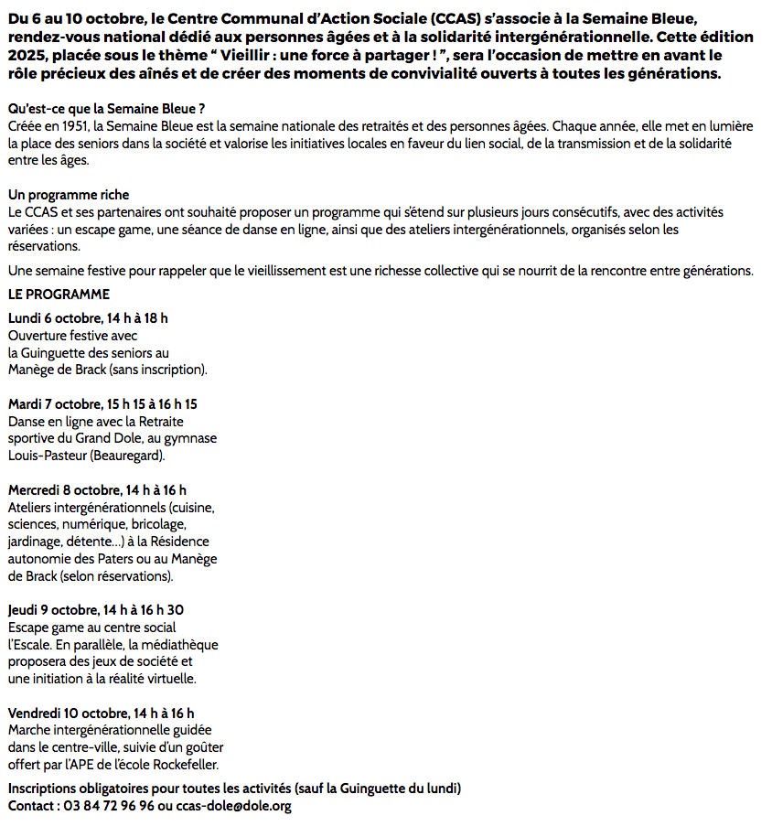 Semaine Bleue du 6 au 10 octobre 2025 - RSGD